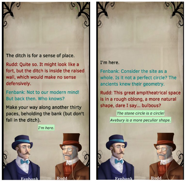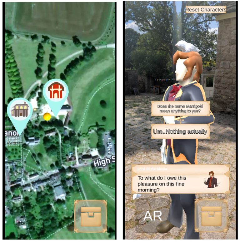 Echoes of Avebury adopts a much stronger form of location linking – with content tied to both GPS location and AR visual location anchors – its guidance is also stronger with full maps with location pins and player tracking.